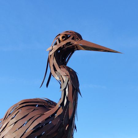 Todas ellas son obra de la artista Coral Corona y está realizadas en hierro oxidado, material que con sus tonos marrones, ocres y rojizos, se entremezcla suavemente con el entorno. En ellas se observan formas simplificadas y pliegues en plumas de hierro que aportan movimiento y ligereza a estas estructuras voluminosas.
